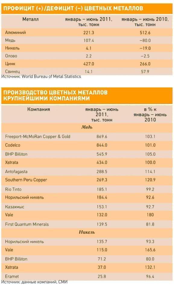 Крупнейшие частные корпорации цветной металлургии, которые опубликовали данные за I полугодие, преимущественно увеличивали производство. Суммарное производство меди выросло по сравнению с январем – июнем прошлого года на 3,6%, никеля – на 7,3%, алюминия – на 4,6%. Производство цинка сохранилось на уровне прошлого года. При этом один из главных производителей и потребителей цветных металлов – Китай – в последние годы наращивает их внутреннее производство темпами, превышающими среднемировые.