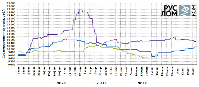 прошедший месяц средневзвешенная цена лома марки 3А в Центральном регионе