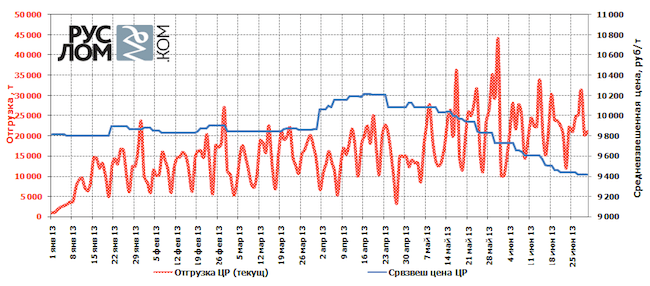 период с 01 по 30 июня 2013 года отгрузка лома черных металлов железнодорожным