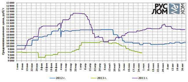 прошедший месяц средневзвешенная цена лома марки 3А в Уральском регионе