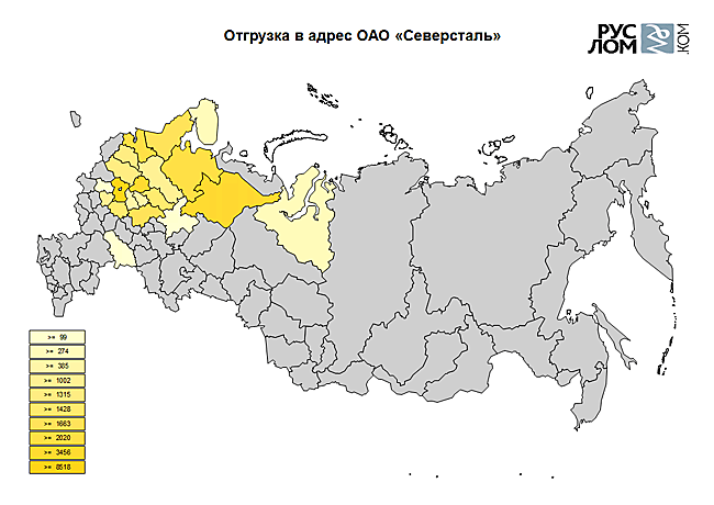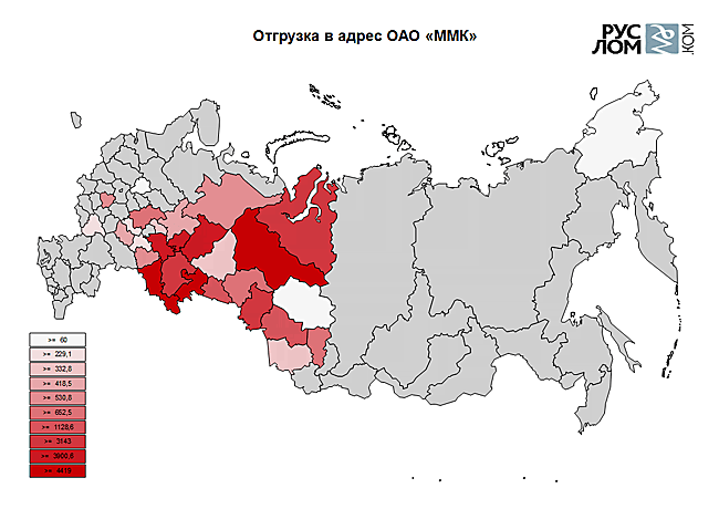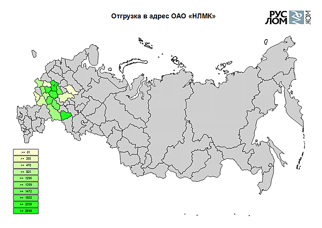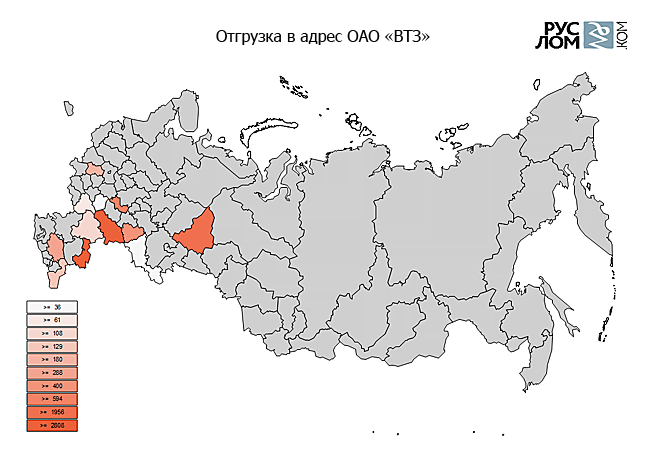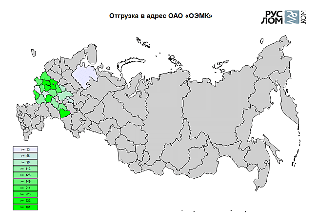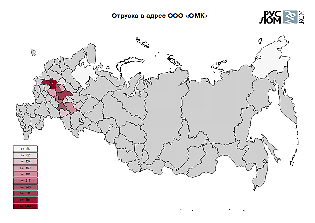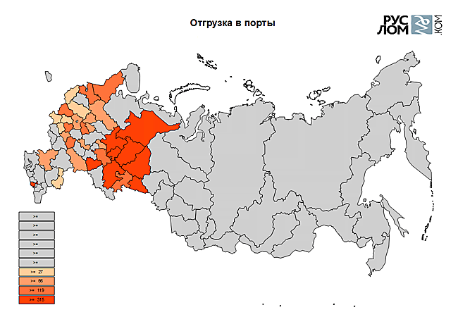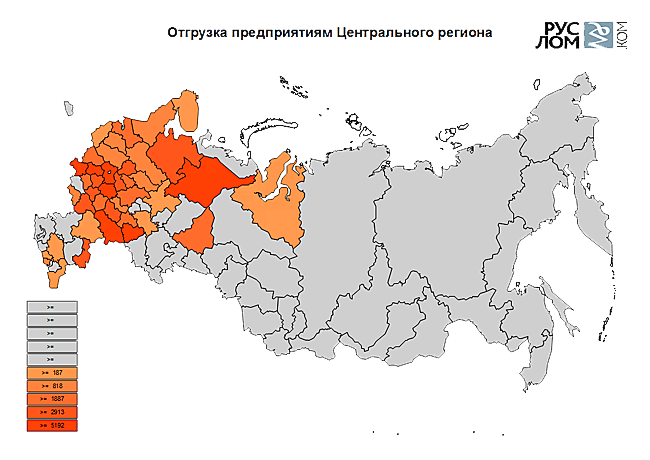 регионов было отгружено порядка 195 тыс. т. металлолома, что составило почти 44% от общего объема отгрузки.