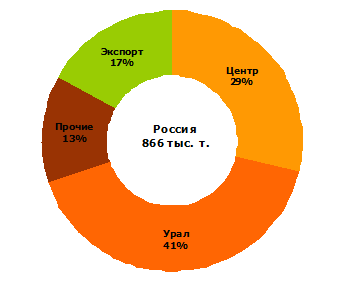 Из них в адрес крупнейших сталелитейных предприятий Европейской части страны было отгружено 29%, предприятиям Урала и Сибири 41%, на экспорт 17%.