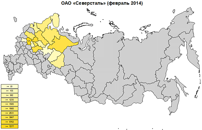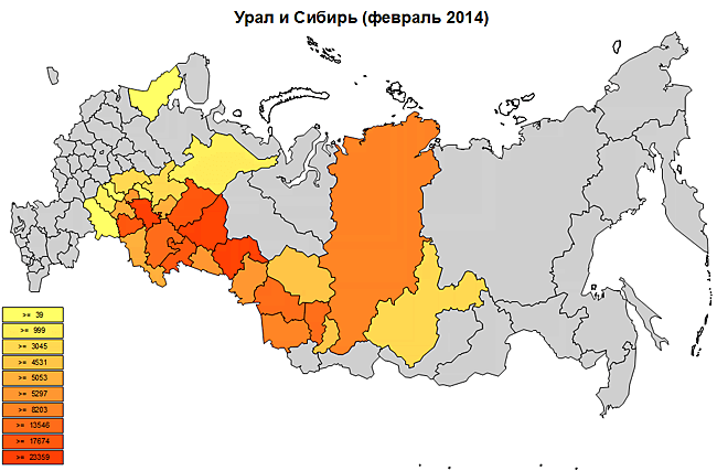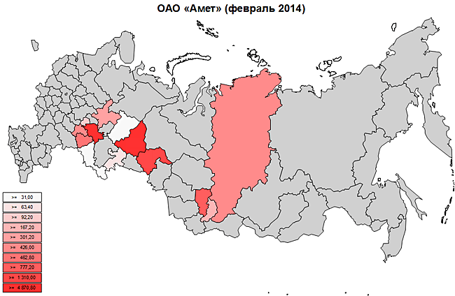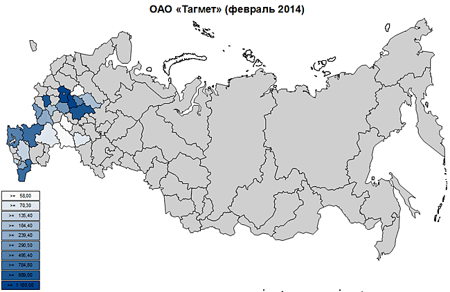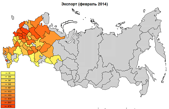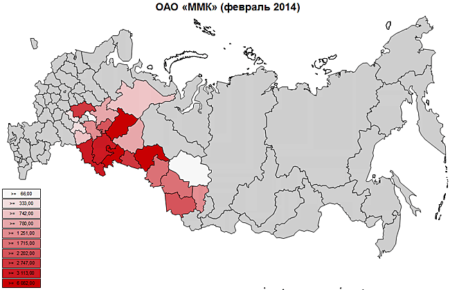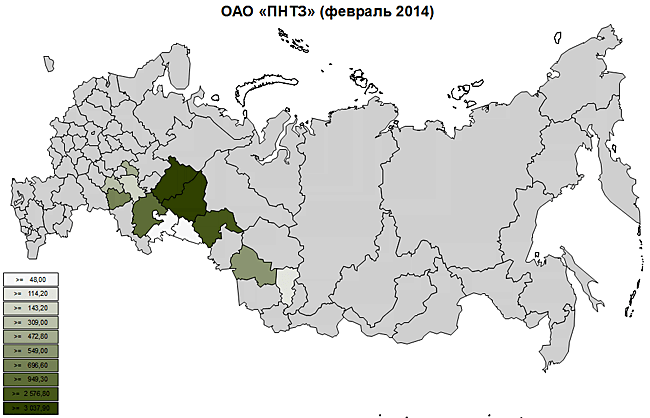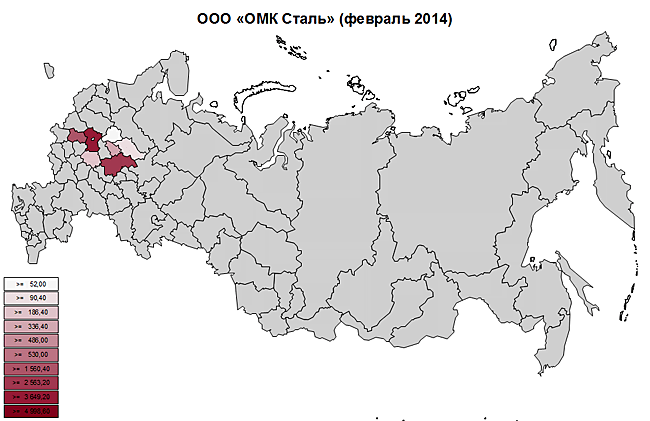 Максимальная отгрузка производилась из Свердловской, Московской и Самарской областей.