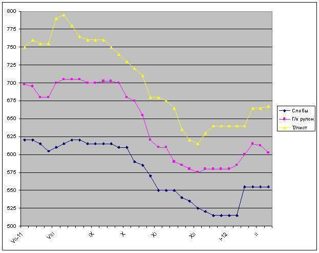 Пока только некоторые компании открыли продажу мартовской продукции. Стоимость ее практически не отличается от февральской. Российские металлурги предлагают горячекатаные рулоны за те же $600-630 за т FOB, хотя и с тяготением к верхней границе интервала, а украинская продукция котируется по $585-600 за т FOB. Судя по всему, существенных изменений в котировках в ближайшее время не произойдет, что объясняется, прежде всего, стабильностью основных рынков сбыта. На Ближнем Востоке стоимость горячего проката уже несколько недель подряд остается на уровне $650-680 за т CFR как в Средиземноморье, так и в странах Персидского залива. В США рост пока приостановился. Азиатские компании столкнулись с сопротивлением потребителей при попытке подъема цен. К тому же, региональный рынок пока ориентируется на китайские $640-650 за т CFR. Возможность для повышения есть только в европейских странах, где местные компании продолжают попытки увеличения котировок, а курс евро, как минимум, не снижается. Однако в Европе своего последнего слова не сказали потребители.