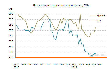 Наибольшие изменения к лучшему произошли в Турции, где после прошедших 30 марта выборов в местные органы власти, завершившихся весьма убедительной победой правящей партии, заметно возрос уровень деловой активности, а строительные и дистрибуторские компании расширили закупки проката. Кроме того, курс турецкой лиры после выборов повысился более чем на 3% по отношению к доллару, что вызвало аналогичное повышение долларовых котировок на внутреннем рынке. Стоимость арматуры, в середине марта, не превышавшая в Турции эквивалента $550-570 за т EXW, подскочила до $575-590 за т EXW, дав металлургам возможность компенсировать подорожание металлолома.