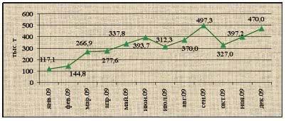 Импорт лома на Тайвань в 2009 г. по месяцам, тыс. т