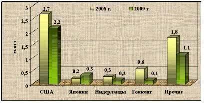 США сократили поставки лома на Тайвань на 20,2% до 2,153 млн т (почти 2,7 млн т годом ранее), Гонконг – на 73,9% до примерно 0,15 млн т (почти 0,57 млн т в 2008 г.), Нидерланды – на 46% до почти 0,15 млн т ( 0,28 млн т). Существенно сократили поставки лома в страну Китай (на 94,2%) и Филиппины (на 57,5%).