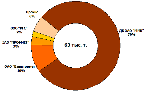 За период с 01 по 12 декабря 2013 г. в адрес ОАО «ММК» ж/д транспортом, при месячном плане в 110 тыс. т, поступило порядка 63 тыс. т лома, что говорит об опережении линейного графика поставки лома черных металлов почти на 20 тыс. т. Почти 80% всех поставок приходится на дочерние предприятия.