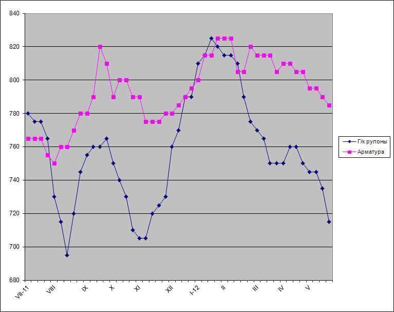 Доля RG Steel на американском рынке плоского проката превышает 5%, так что вывод из строя этих предприятий может заметно снизить уровень перепроизводства. Тем не менее, по оценкам аналитиков, рынок все равно вряд ли достигнет относительно сбалансированного состояния раньше конца лета. Поэтому на нем доминируют негативные ожидания, недавно еще и усилившиеся вследствие новых экономических потрясений в Европе. По мнению ряда специалистов, остановить спад на рынках арматуры и горячего проката можно будет лишь на уровне $720-730 и $670-690 за метрическую т EXW соответственно.