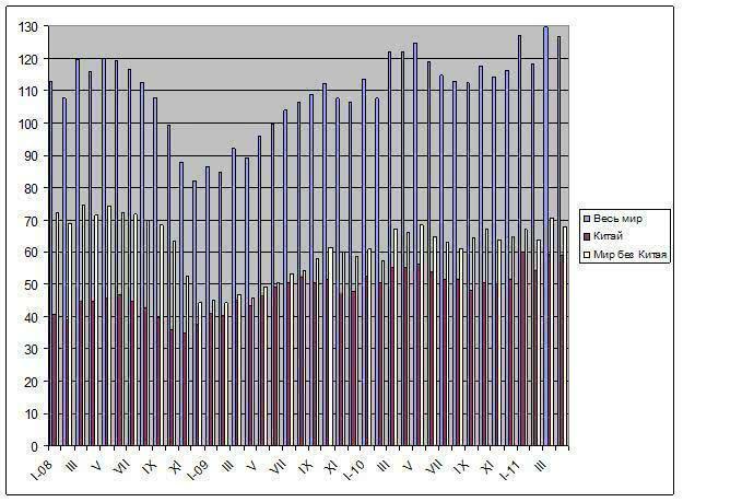 Между тем, в США производство стали в январе-апреле текущего года возросло на 6,6% по сравнению с аналогичным периодом предыдущего года, в ЕС-27 – на 6,1%. На 9,8% увеличилась выплавка стали в России, а Украина прибавила 5,4%. Впрочем, все эти регионы, а также Япония, до сих пор не вернулись на докризисный уровень 2008 года. Если не брать во внимание Китай, Индию, Корею и Турцию, то в странах «остального мира» отставание от первых четырех месяцев 2008 года составит 12,2%, причем, в Украине оно будет превышать 20%.