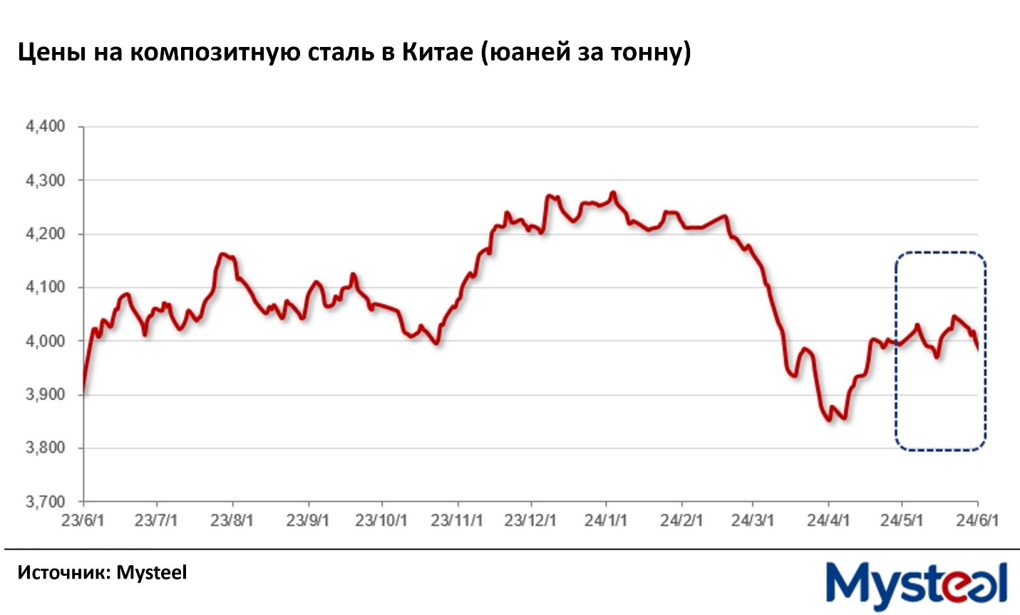 На самом деле, такие противоположные силы уже сдерживали внутренние цены на сталь в мае, хотя в итоге цены немного выросли. По данным Mysteel на 31 мая, цена на композитную сталь в Китае составила 3 997,52 юаней за тонну ($562,8/т), что на 4,39 юаней за месяц выше.