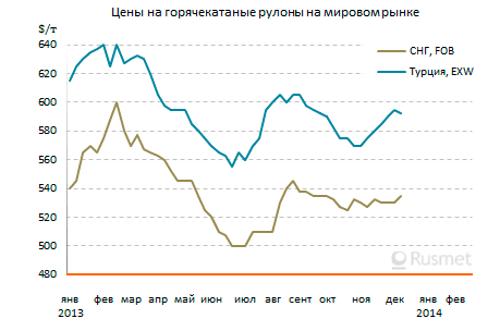 В Турции повышение внутренних цен на горячий прокат, продолжавшееся с конца октября, в декабре постепенно сошло на нет. Местные металлургические компании предлагают февральскую продукцию по $590-600 за т EXW, хотя при заключении реальных сделок котировки могут опускаться до $585 за т. Существенных изменений здесь в ближайшем будущем не ожидается.