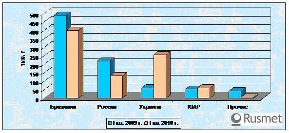 В январе-марте 2010 г. импорт чугуна в США снизился по сравнению с аналогичным периодом 2009 г. на 1 % до 855,8 тыс. т. Причем, поставки из Бразилии и России снизились при резком увеличении из Украины. Так, по итогам I кв. 2010 г. Бразилия отгрузила в США 400,3 тыс. т чугуна, что на 17,9 % ниже, чем в I кв. 2009 г.
