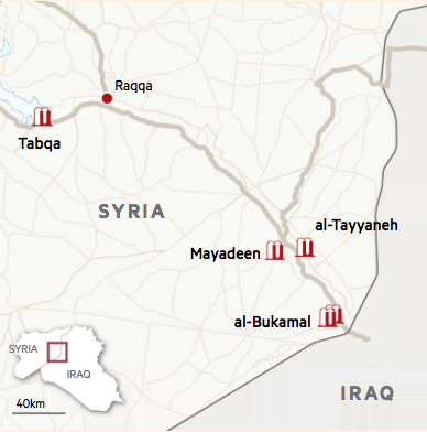 Основной нефтедобывающий регион ИГИЛ находится в восточной провинции Сирии Дейр эз-Зор, где добывается от 34000 до 40000 баррелей в день, по словам местных жителей. Террористическая группировка также контролирует месторождение Кайяра около Мосула на севере Ирака, производящее около 8000 баррелей в день более тяжелой нефти, в основном используемой на месте для изготовления асфальта.