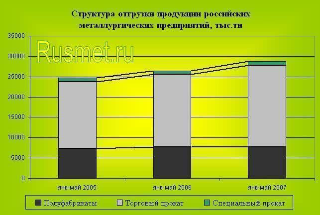 В среднем доля заготовке в общей отгрузке металлургических заводов и комбинатов составила по итогам января-мая текущего года 27%, в то время как за аналогичный период прошлого года этот показатель составлял почти 30%. При общем росте отгрузки готового проката на 12% (по сравнению с январем-маем прошлого года) продажи российских полуфабрикатов практически не изменились (+0,3%).
