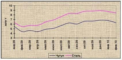 /Rusmet.ru/ Производство стали в Японии находится на высоком уровне, хотя в феврале ее выплавка незначительно (на 3,3% или на 289 тыс. т) снизилась по сравнению с январем. Вместе с тем, выплавка стали в феврале по сравнению с аналогичным периодом предыдущего года выросла на 54% и составила, по данным Japan Iron & Steel Federation, 8,435 млн т. Отметим, что в течение последних семи месяцев выплавка стали в Японии не была ниже 8,2 млн т, а еще в феврале предыдущего года она составляла менее 5,5 млн т.По итогам 11 месяцев 2009 финансового года (завершается в марте 2010 г.) выплавка стали в Японии составила 87,097 млн т, что на 12,7% ниже показателей аналогичного периода предыдущего финансового года.Необходимо отметить, что в феврале текущего года в Японии выплавка конвертерной стали по сравнению с предыдущим месяцем снизилась на 6,9% до 6,621 млн т (рост к февралю 2009 г. составил 58,5%), в то же время производство электростали в стране увеличилось к предыдущему месяцу на 12,7% до 1,815 млн т (рост на 39,3% к февралю предыдущего года).В феврале было также отмечено некоторое сокращение производства чугуна в Японии к уровню предыдущего месяца – на 7,6% (на 516 тыс. т) до 6,273 млн т. К уровню февраля предыдущего года рост выпуска чугуна составил 42,8%.Всего по итогам 11 месяцев 2009 финансового года производство чугуна в стране составило 65,513 млн т (снижение на 11,4% к соответствующему периоду предыдущего финансового года).Выпуск горячекатаного проката в Японии в феврале 2010 г. составил 7,684 млн т, что на 2,2% или на 172 тыс.т ниже показателей января (рост на 61,6% по сравнению с февралем 2009 г.). Всего выпуск продукции из рядовых сталей в Японии в феврале составил 6,186 млн т, что на 1,8% ниже показателей января (рост на 52,5% к февралю предыдущего года), а из специальных сталей - 1,498 млн т –снижение на 3,9%. К уровню февраля 2009 г. производство продукции из специальных сталей выросло в 2,1 раза.
