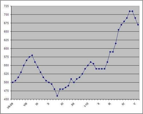 По словам японцев, действовать вопреки рыночной логике их вынуждает растущая дороговизна сырья. По предварительным оценкам, стоимость австралийской железной руды в третьем квартале может прибавить более 30% и превысить $150 за т FOB. Вероятно, немного поднимется в цене и коксующийся уголь. В последние два месяца спотовые цены на него составляли, в среднем, $240 за т FOB Австралия, тогда как контрактные цены на второй квартал равняются, примерно, $200 за т FOB. Наконец, стабильно идут вверх и полуфабрикаты. Российские и украинские компании в начале мая повысили цены на слябы до около $630-660 за т FOB, что соответствует около $700 за т CFR Восточная Азия.